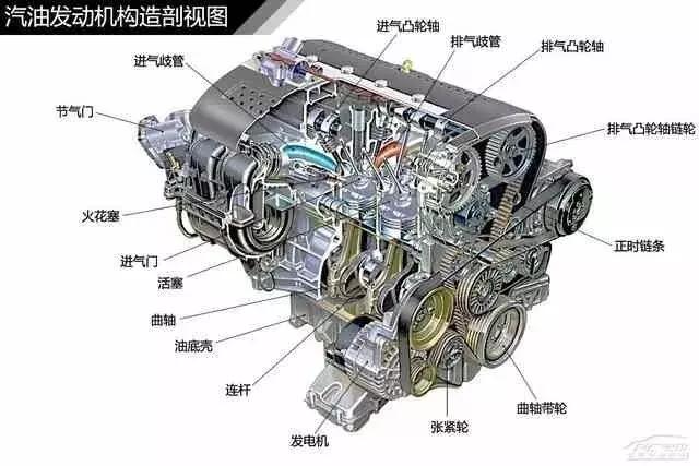 一般說到汽油發動機,我們都會說它是由2大機構5大系統構成:1、曲柄連桿機構,2、配氣機構,3燃料供給系統,4、潤滑系統,5、冷卻系統,6、啟動系統、7點火系統(柴油發動機沒有點火系統)等組成。